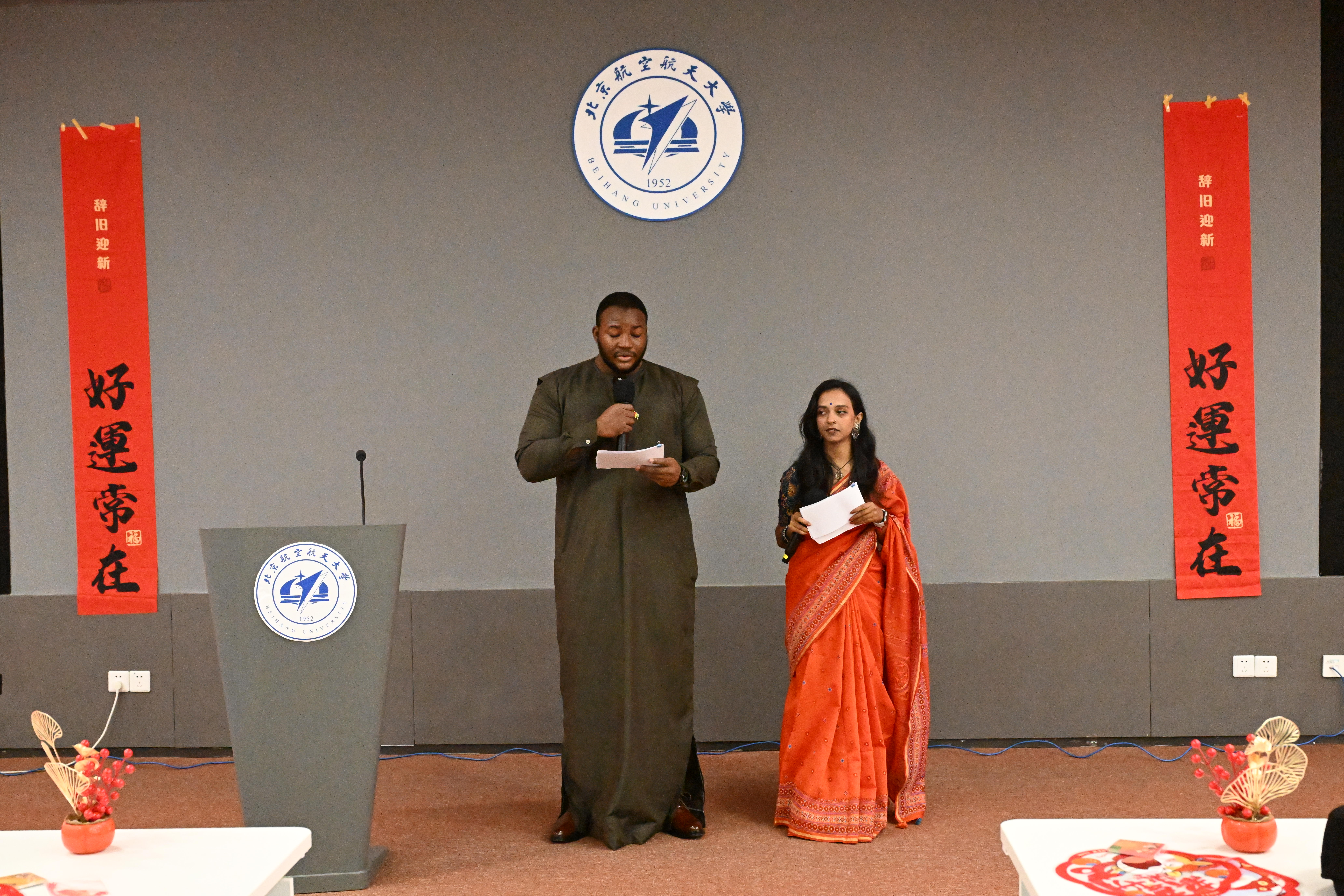 晚会由区域中心留学生Diarra与Gupta共同主持。两位主持人流畅串联全场,营造出轻松而热烈的现场氛围。